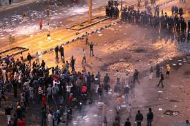 Ten tanks were lined up on the road leading to the southern Cairo courthouse compound. There was another large army presence—more than 60 tanks and other armored vehicles—near Cairo Stadium and the city's conference center.